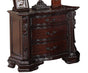 Traditional elegance will be brought to a whole new level with the exquisite Maddison nightstand. This piece carries a warm brown cherry finish and include several distinct features, including ornate wood carvings, crowned top and roped detailing.