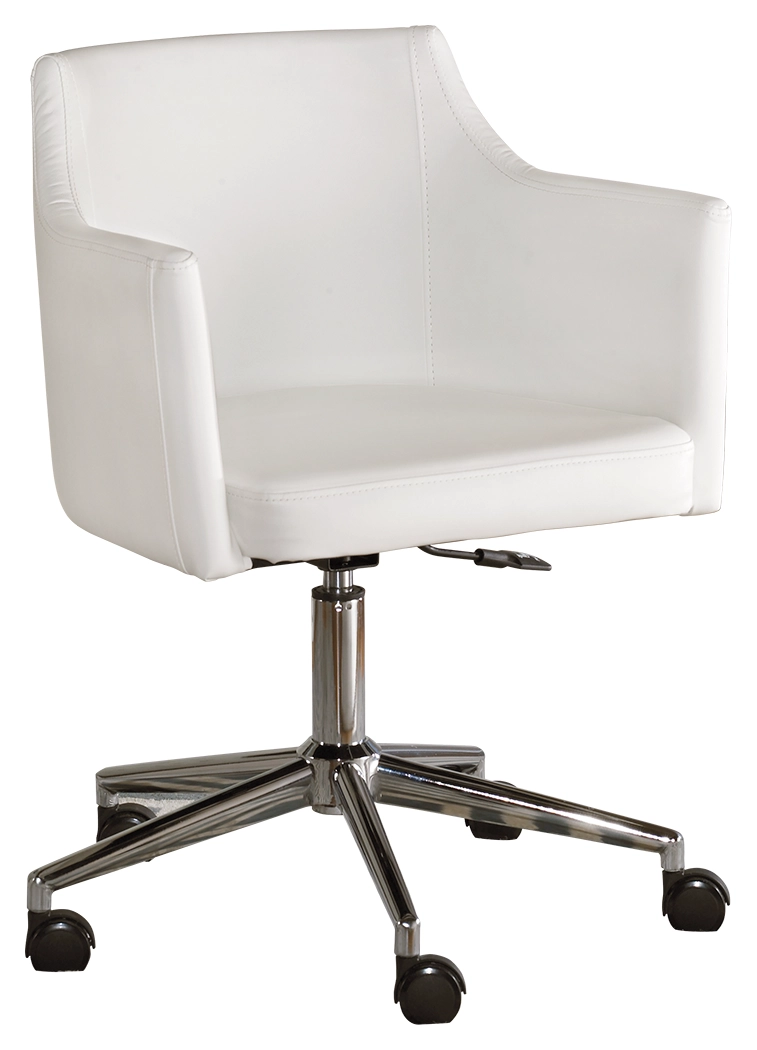 This swivel desk chair delivers the comfort you crave with the modern style that suits your taste. Sleek, linear design and faux leather maximize a minimalist look. Casters, adjustable seat and 360-degree swivel make this functional piece all the more flexible.