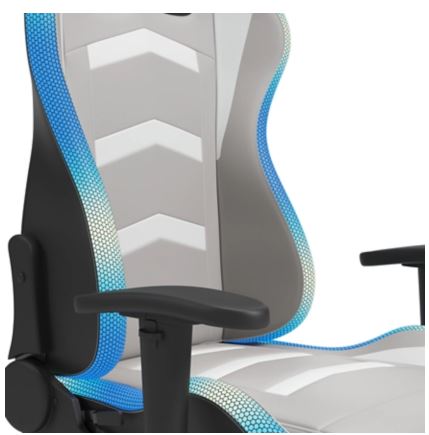 Tech this out: a swivel office chair that’s as cool as it is comfortable. The ultimate choice among gamers, this swivel office chair is hard to beat. Quality crafted with a sturdy steel frame, this swivel office chair with comfy contoured seat and cutting-edge design is upholstered in a durable faux leather in white and gray. Cleverly integrated into the chair: powered LED lighting to enhance the gaming experience. Choose from six different colors or stream a mix of color using the remote control. With a swivel base, smooth-gliding casters and adjustable seat height/tilt feature, this office chair with fully reclining backrest has serious game.