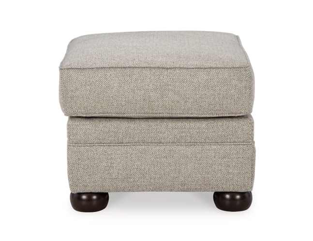 Inspired by the past but rooted firmly in the present, this ottoman complements your transitional seating area. Its versatile upholstery is delightfully detailed for a subtle herringbone effect. Designer touches like bun legs add traditional character. With this ottoman's reliable style and comfort, all you need to do is kick back and relax.