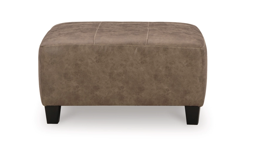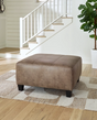 This decidedly modern oversized accent ottoman proves less is more, bringing simply inviting style to your living room. Take the guesswork out of decorating—its warm faux leather has a universal appeal, pairing with casual and contemporary aesthetics alike. With this companion piece, all you need to do is kick back, relax and enjoy the comforts of home.