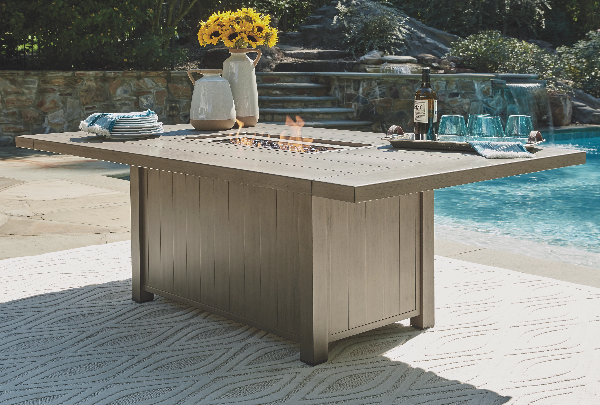 Inspired by high-style modern farmhouse interiors, this rectangular fire table conveys a warmth and sophistication that’s just your style. The table’s plank-effect details and easy-on-the-eyes light brown hue exude a sense of easy elegance. What really puts on a show—the way the fire table’s flickering flame seems to float on a bed of clear glass beads. Best of all, this quality crafted outdoor table with multistep, wood-look finish is made of rust-free aluminum for lots of seasons in the sun.