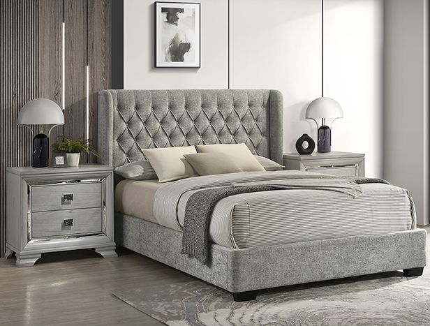 The Daphne Collection is every bit contemporary with a functional design. Boasting a gray finish, this queen bed is a chic addition to your master suite or guest bedroom. This bed is beautifully designed with a button-tufted headboard. The use of fine-quality wood further adds strength and durability to this bed. A matching nightstand is also available as an option. You can also upgrade the bed to King Size.