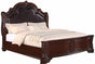This bed features bracket feet, a leather-like upholstery headboard with nailhead trim, and intricately carved molding details that complete the look of the bed. Transform your master bedroom suite to one of luxury with this traditional style panel bed. It has upholstered headboard panels, stout, bracket legs, and matching side rails.
