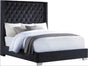 The Michelle Bed allures with the glitz and glam befitting silver screen queens. Exquisite frame's metallic tone channels that Hollywood Regency flair you've been dreaming of. Tall upholstered bed with faux diamond tufting and black textured cover.