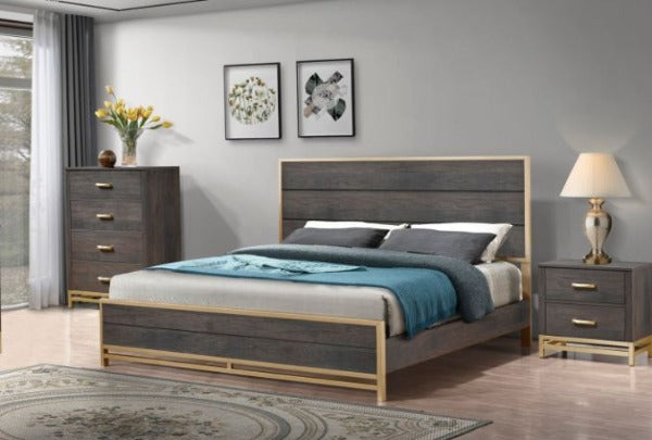 This king bed oozes contemporary beauty with its sleek lines and dark finish, adding a touch of refinement to any room. Make a statement in your bedroom with this exclusive bed that combines style and function for a genuinely refined living experience.