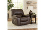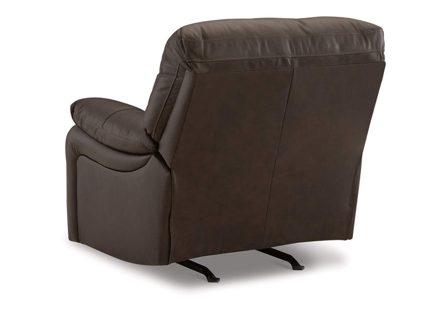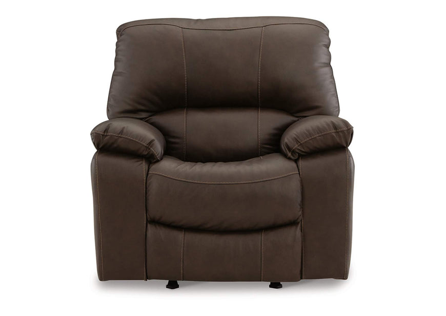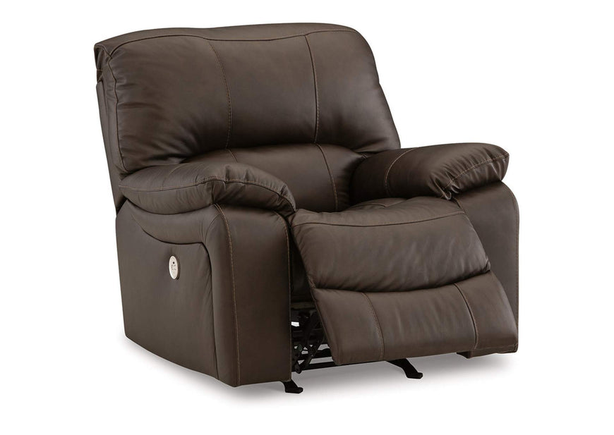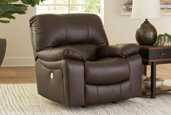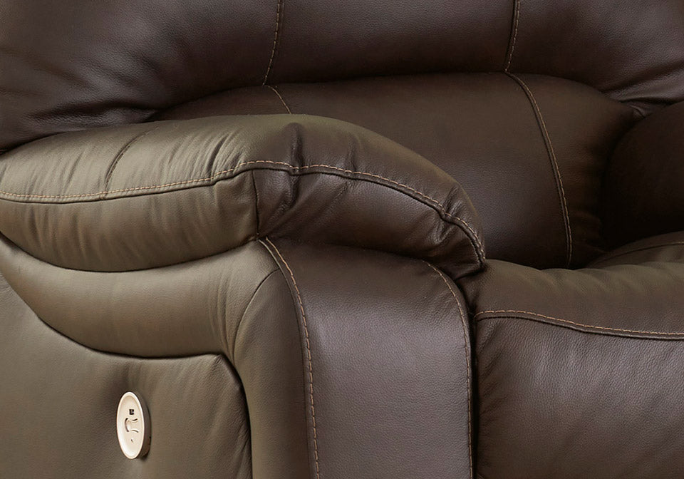 Focus on function. This practical power rocker recliner balances contemporary character and irresistible comfort. Its affordable, leather upholstery keeps your style up to speed without breaking the bank. Reclining with the touch of a button, this piece plays well in relaxed, luxe seating areas made for quality time.
