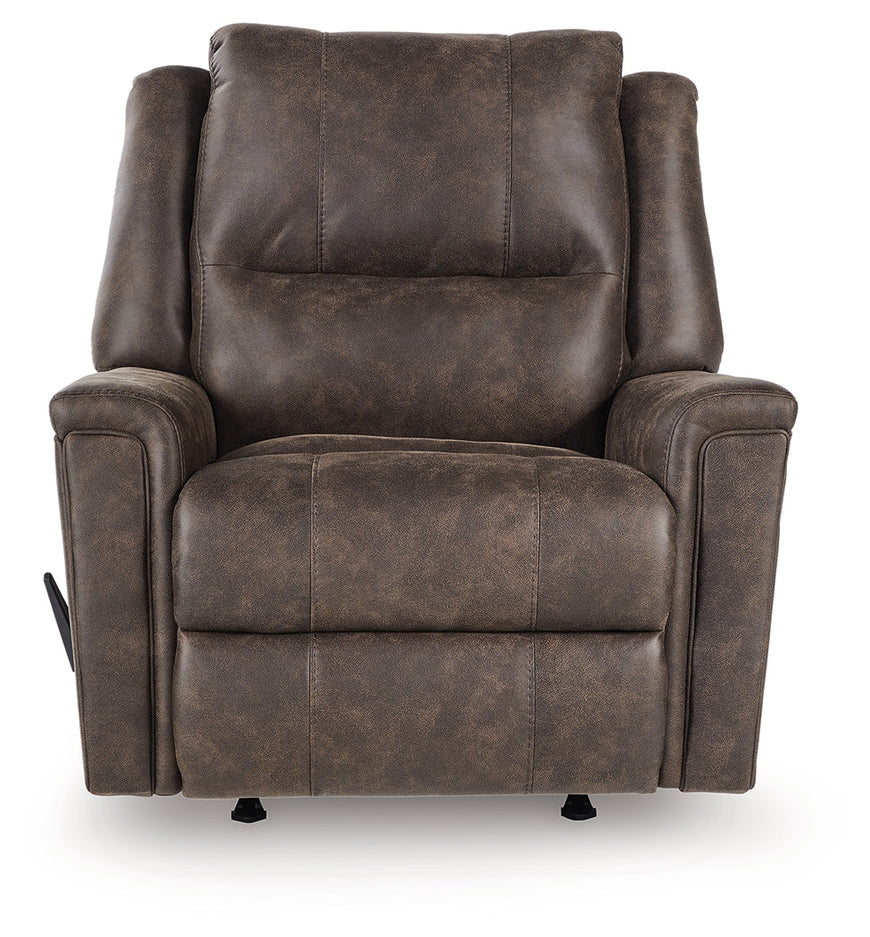 When it comes to the exquisite, decadent styling of this rocker recliner, sitting is believing. Its generous seat and tall back are specially crafted to provide extra support and comfort for broader and taller individuals. This recliner is made for easy and instant relaxation, with pull tab reclining and pillowy cushioning covered in smooth faux leather.
