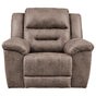 For those that love the cool look of leather but long for the warm feel of fabric, this rocker recliner delivers both with ease. Its high-performance padded faux leather is remarkably durable and easy to clean, just the thing for family spaces. Channel-stitched back cushions provide indulgent lumbar support for maximum comfort—not to mention fashion-forward flair.