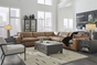 Catering to your contemporary lifestyle, this seating package is a handsome marriage of masculine and feminine sensibilities. Plush cushions soften the look of chunky, linear silhouettes. Warmly hued leather match upholstery levels up the affordable luxury. And you'll never run out of ways to stage this set-each piece is fully finished on all sides and capable of standing solo. Urban sophistication has never been more versatile.