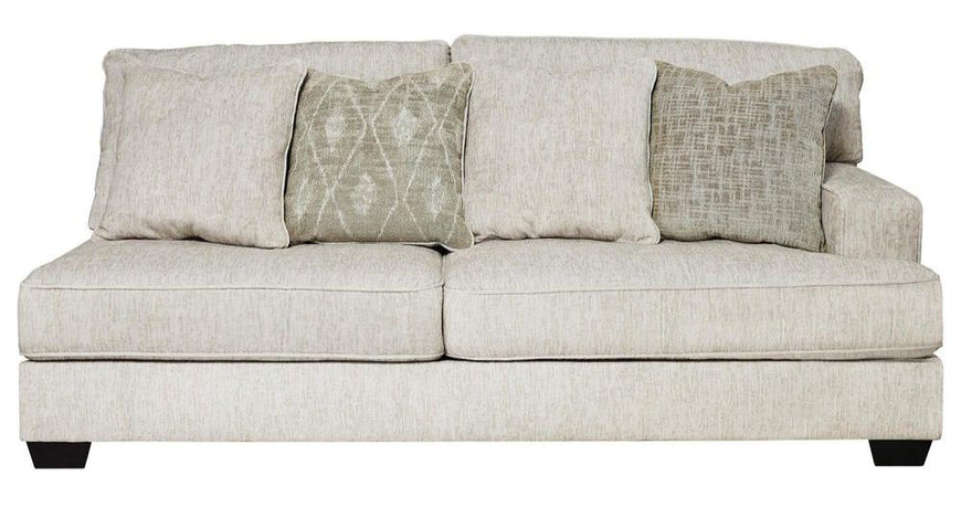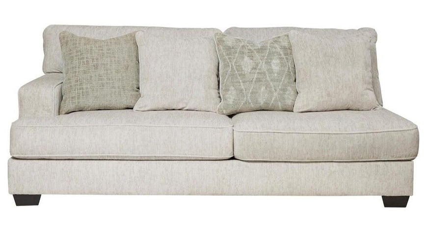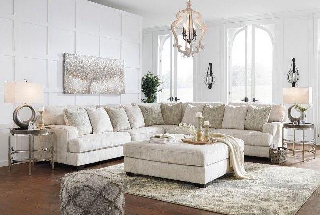 If you love the idea of contemporary style that's ultra warm and inviting the Rawcliffe 3-piece sectional is casual refinement you'll love living with. Lightening things up in a fresh neutral tone this sectional is covered in a decadently soft chenille microfiber that's love at first touch. Rest assured ultra-deep 45" seats and reversible cushions you can flip and fluff nicely accommodate while clean-lined styling and wide track arms make a fashion statement.