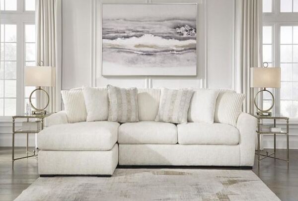 Reflect your uniquely versatile style personality with this sectional with a chaise. Its plush upholstery is complemented with retro-cool corduroy on the back cushions, creating an ultra-soft seating experience with tons of eye-catching texture. Ready to refresh your aesthetic? The sectional’s transitional silhouette and neutral hue easily adapt to your style as it changes.