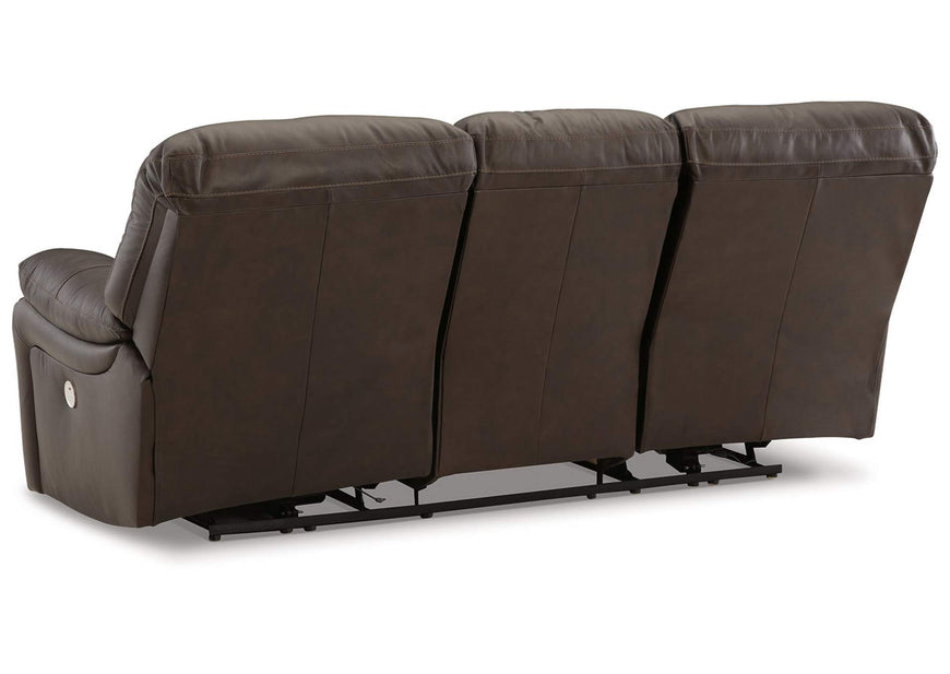 This practical power reclining sofa emphasizes functionality, combining contemporary character with irresistible comfort. Its affordable, leather upholstery ensures a stylish look without breaking the bank. With the convenience of reclining at the touch of a button, this piece is perfect for relaxed, luxurious seating areas designed for quality time. Dimensions:...