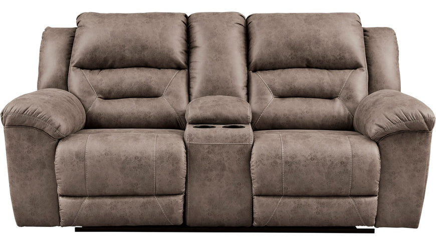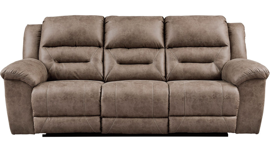 When it comes to comfort, Stone sofa and loveseat has you covered. This high-quality power reclining living room set gives you the best of both contemporary style and cozy comfort. With its faux leather upholstery, this set will add a touch of luxury to your home. The dual-sided recliner gives you the option to recline in either direction, while the middle seat remains stationary. So relax and recline in style with our Stoneland power reclining living room set.
