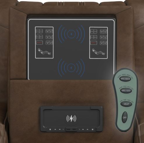 Experience the perfect blend of luxury and functionality with the bonanza reclining living room set. Crafted for both style and comfort, the durable, easy-to-clean upholstery adds a sophisticated touch to any living space. Reclining seats effortlessly lean back and unwind with smooth reclining functionality for ultimate relaxation. Built-in Massage Function Select seats feature an integrated massage system to soothe aches and enhance comfort. Drop-Down Center Table Convenient fold-down table with charging ports to keep essentials within reach. Hidden Storage Console Discreet compartments perfect for stashing remotes, books, and other accessories. Recliner is sold separately.