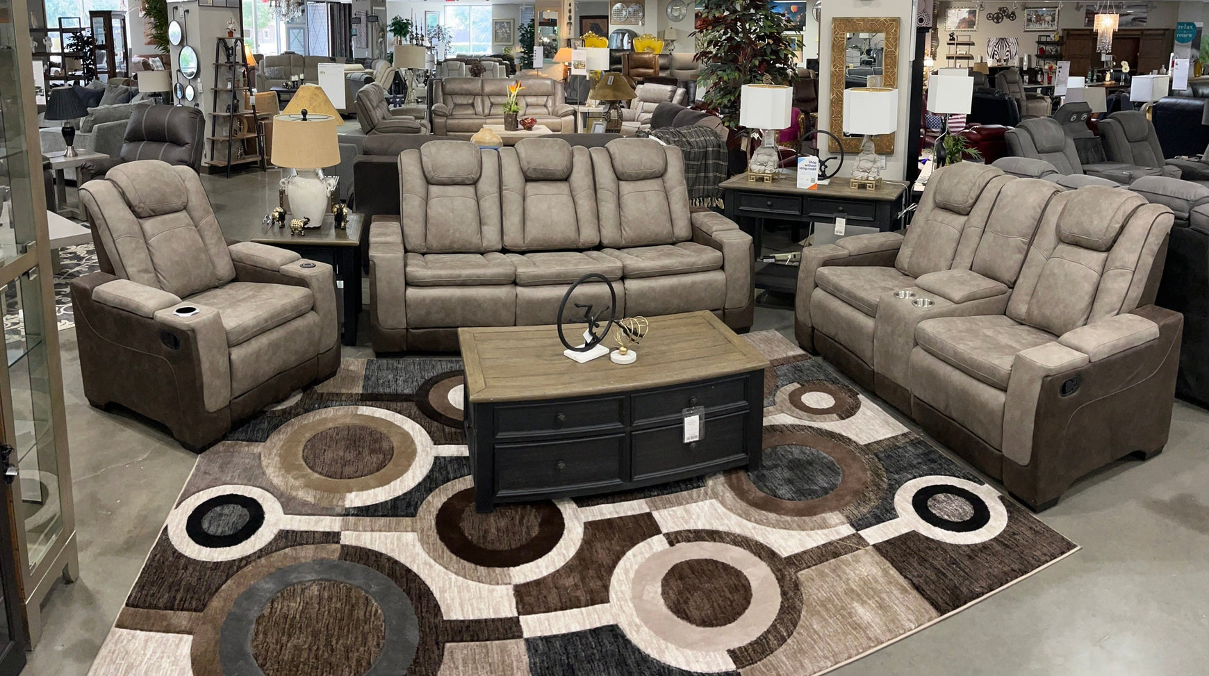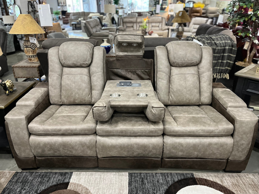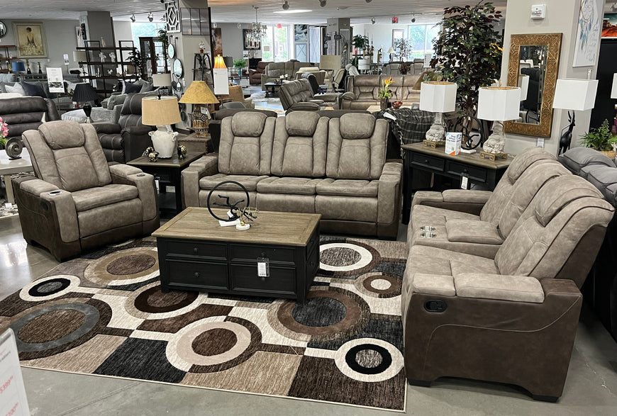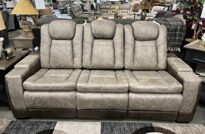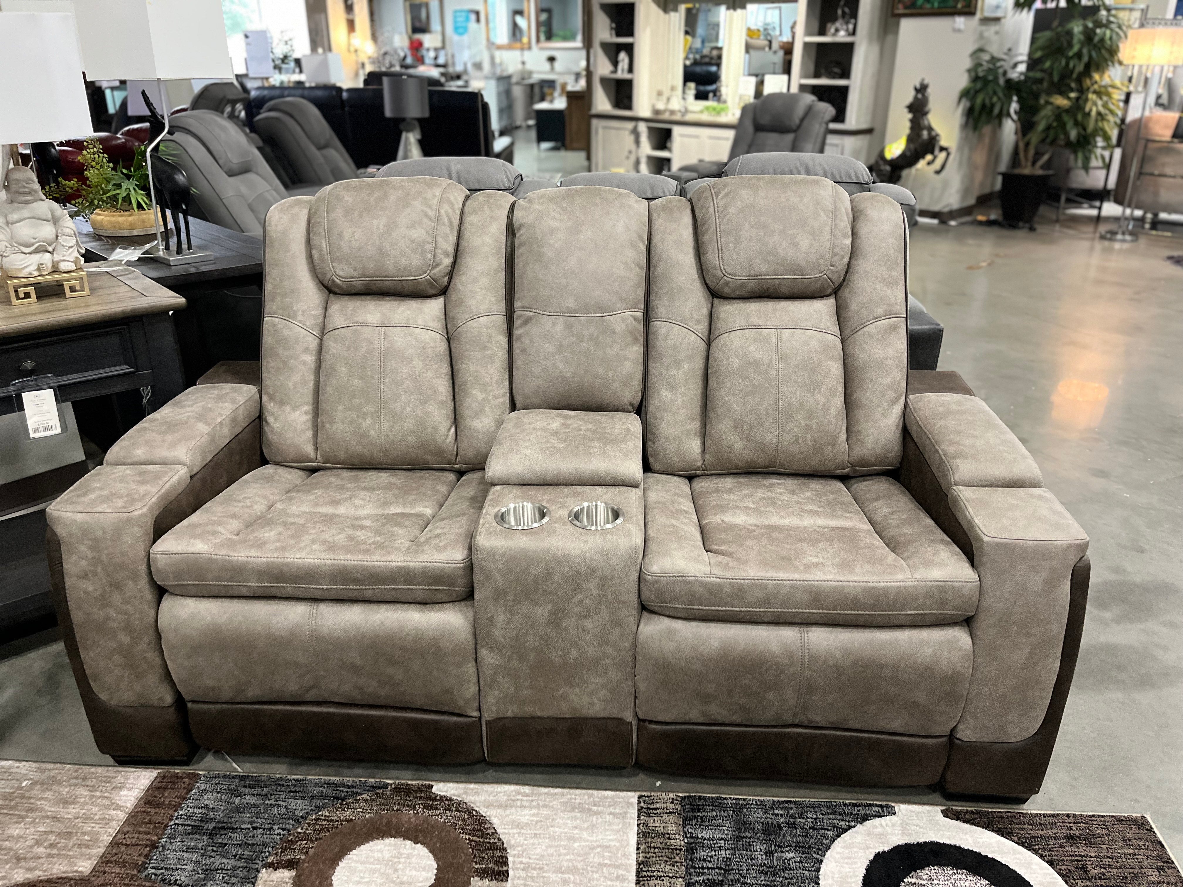 Unwind in luxurious comfort with the Lantana Living Room set, a perfect blend of modern functionality and timeless style. Featuring a manual reclining this set ensures optimal relaxation. The dual-tone and faux leather upholstery adds a stylish touch, while the sofa drop-down table with built-in cup holders keeps your essentials close at hand. Enjoy added convenience with the sofa's reading light, while the loveseat offers a console with cupholders. Complete with hidden storage in the arms the Lantana is designed for effortless living.
