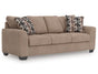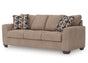 Transitional and right on trend. This sofa and loveseat set’s upholstery is a delightful change from the ordinary, with hints of soft brown giving the gray hue added depth. It’s punctuated with chic accent pillows in an eye-catching, stylized stripe design. Whether you're hosting friends and family or relaxing solo, this sofa invites homey, comfortable character into your space.