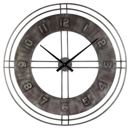 Merging an antiqued gray finish with a minimalist chic open design, this wall clock offers a timeless sense of style that can suit vintage-inspired and contemporary spaces equally well. Raised numbers give a simply striking look added dimension.