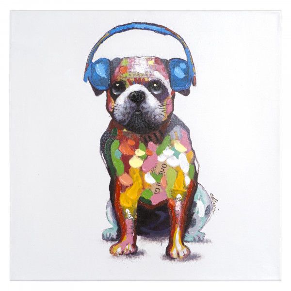 This little doggy would perfectly compliment your living space. The acrylic painting shows a cute canine listening to earphones and looking nothing short of precious. Take this painting home today or give it as a fun gift.