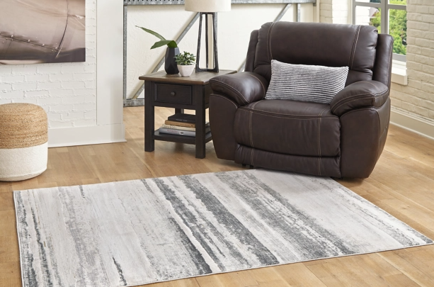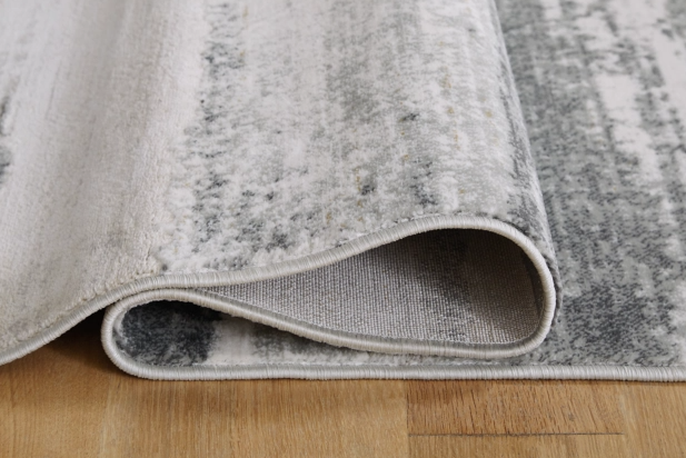 Set off your decor in sophisticated style with this area rug. With a high-low abstract design in cream, gold, sage and shades of gray, it complements a variety of interior design themes. Made of heat set polypropylene/polyester shrink yarn Machine woven 9mm pile Backed with jute Spot clean only Rug...