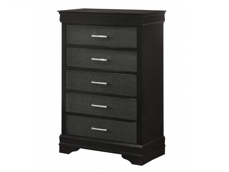 This Amalia chest brings a classic touch to your bedroom. It features five drawers adorned with classic metal pulls that provide essential storage space.