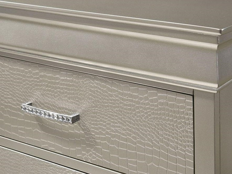 Set Includes: Headboard, Footboard, Rail, Dresser, Mirror, and Nightstand.