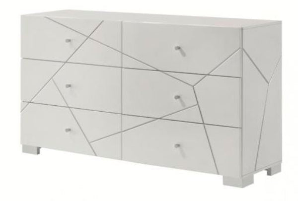 This dresser features a high-gloss white finish with bold geometric accents for a sleek, modern look. Clean lines and streamlined hardware enhance its minimalist style while offering ample storage. A perfect blend of contemporary design and everyday function.