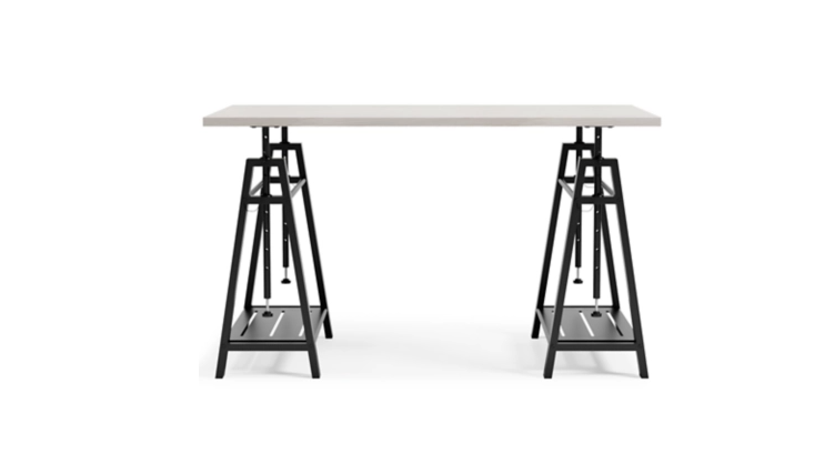 Love an urban farmhouse aesthetic? Make it work to your advantage with this beautifully styled home office desk. A simply striking choice in home office furniture, it has an unmistakable farmhouse feel thanks to design elements including a whitewashed finish and gunmetal accents, this sawhorse adjustable height desk is right on trend. Whether you're sitting, standing, typing or crafting, you're sure to love the sawhorse desk's unique 8-level adjustable height feature.