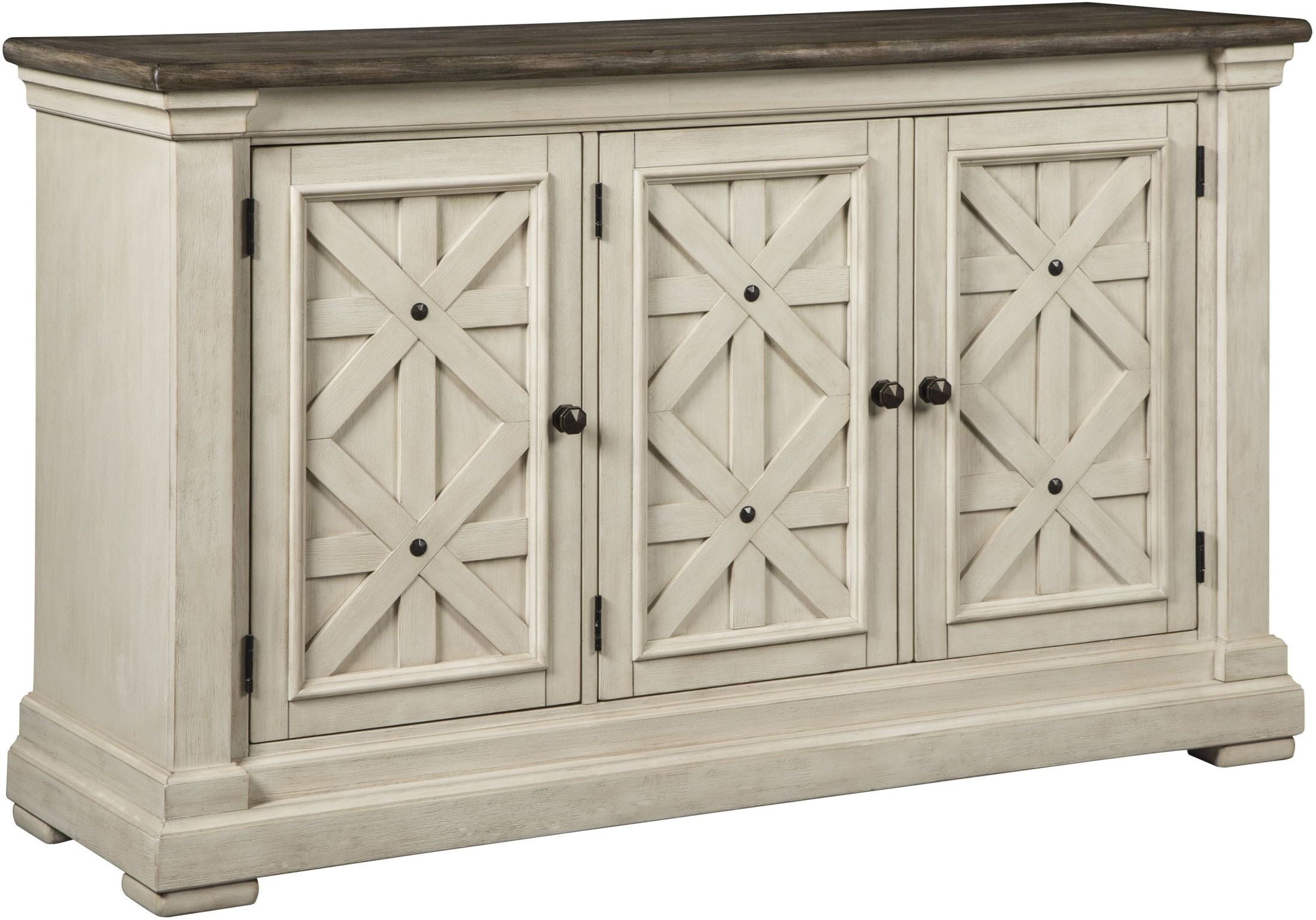 Unique two-tone finish with a combination of Oak and Acacia substrates combining a trendy textured antique white color with table and server tops finished in a textural weathered oak finish. Rectangular dining table features six convenient drawers for storing smaller items. The side chairs feature a boxed cushion seat. All chairs feature a heavy woven fabric for added textural qualities. The large capacity server has three doors with lattice design. The tall bunching unit has two drawers, three shelves and open lattice sides. Rectangular counter table features six convenient drawers for storing smaller items. All chairs feature a heavy woven fabric for added textural qualities.
