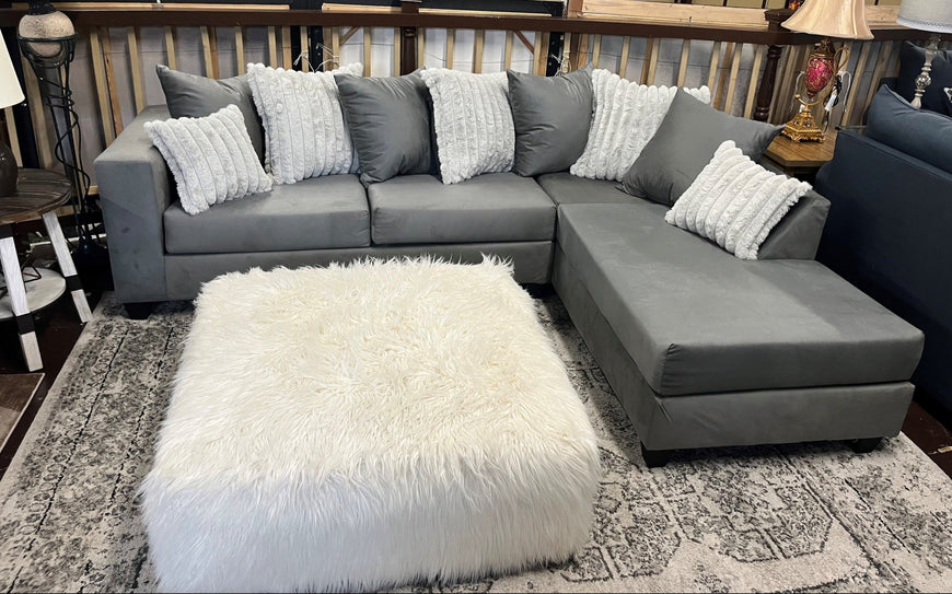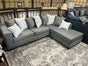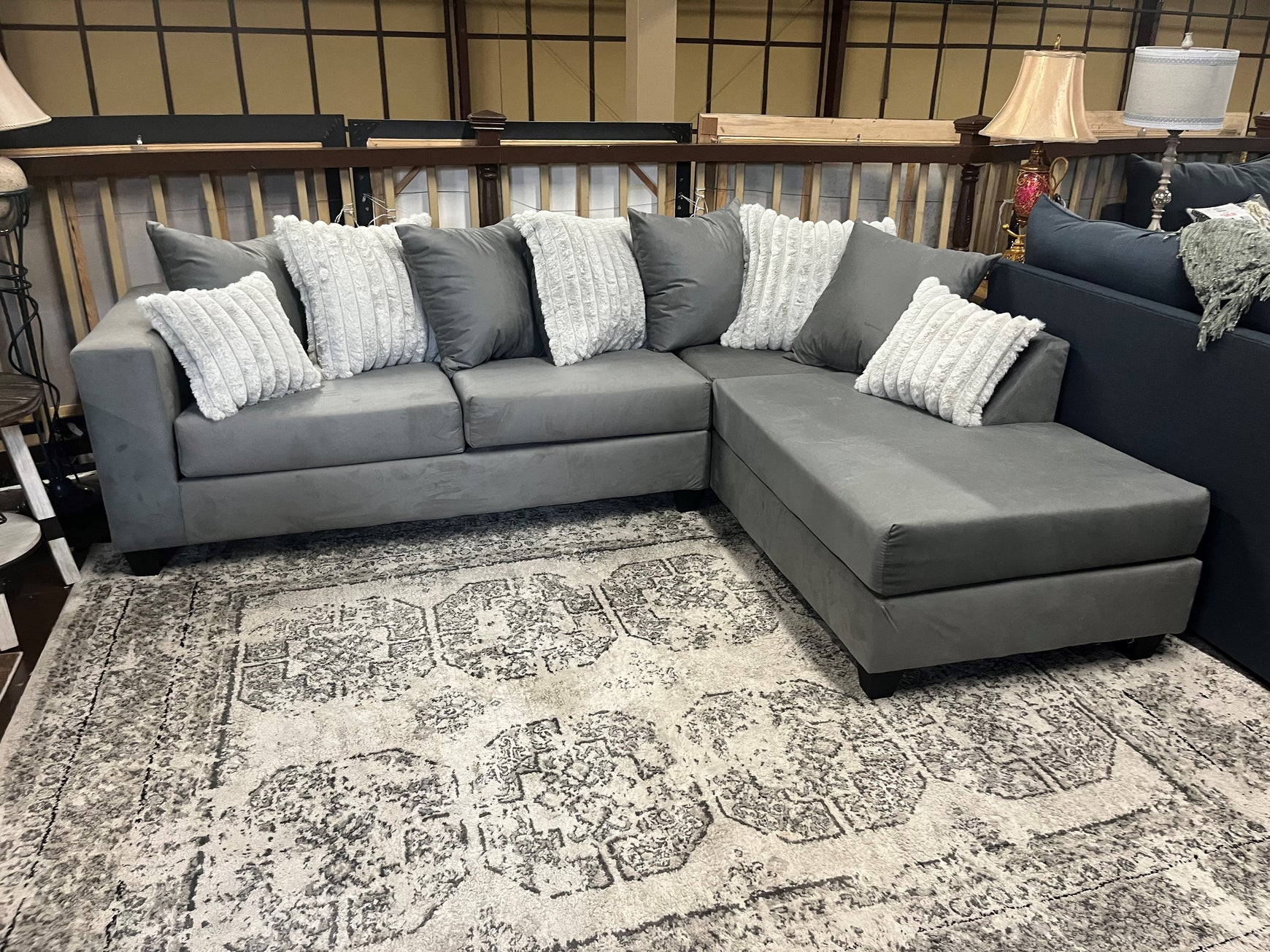 Sleek, contemporary style is epitomized with this sectional. It offers a great look to your living room with loose back cushions with button-tufting, reversible seat cushions, and track arms. Two sets square accent pillows and tapered feet in a dark finish contribute to the stunning style and comfort of this...
