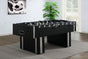 The aesthetically pleasing Clara foosball table provides an attractive, fun, and functional elements for your indoor or outdoor spaces. The stylish gaming table has a durable exterior with a beautiful contrast finish. The sturdy box legs and linear design combine stability and composition. The play-field was constructed to insure a true level surface for accurate table play. The stainless steel rods and easy spin bearings with counterbalanced players keep the ball in play for continuous fast paced action! This is the perfect addition to your game room for some friendly competition.