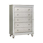 The Cristian Nightstand will make a great addition to your bedroom. It features mirror accents, turned feet, a crosshatch pattern on the drawer fronts, and comes in a champagne finish.