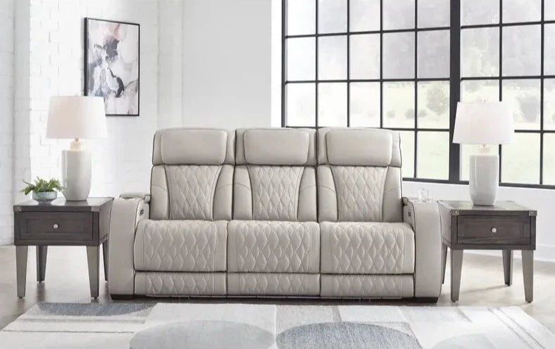 Ready to take your reclining experience to the next level? Then sit up and take notice. With this Genuine Leather Power reclining living room set, ultimate relaxation is at your fingertips. Experience the pure bliss of an air massage system and heated seats at the touch of a button. Plus the luxurious diamond-stitched genuine leather upholstery is easy on the eyes, adding elegance to any space. Nothing beats this power reclining sofa when it comes to convenience and performance.