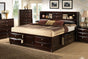 Organize your bedroom with the convenient storage of the Emily Storage bedThe footboard and rails are equipped with six smooth-gliding drawers for your clothing and accessories. Two open shelves and two central drawers store reading materials and other essentials in the headboard. With its curve-line design, this durable, solid hardwood bed blends well with contemporary décor.