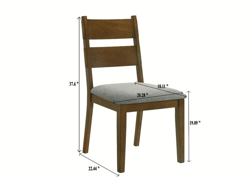 Each chair is designed with a contoured back and upholstered seat for exceptional comfort, seamlessly combining form and function. The neutral tones and clean lines create a look that effortlessly complements both modern and farmhouse aesthetics, making it an ideal choice for those who value style and functionality in their dining area.