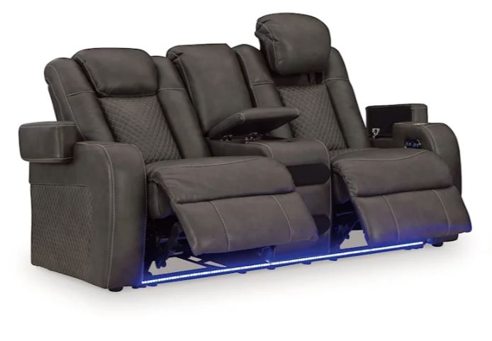 This power reclining loveseat goes beyond basic comfort. It upgrades the every day, turning your living room into an entertainment hub. Don’t want to leave your seat? Keep essentials in reach with cup holders and storage arms. You can create an even cooler vibe for family movie nights and friendly gaming matches with LED lights. Immerse yourself further with built-in wireless audio connectivity. And your sleek style isn’t compromised—its diamond stitching and streamlined arms recall the aesthetics of luxury automobiles.