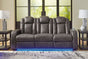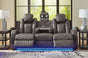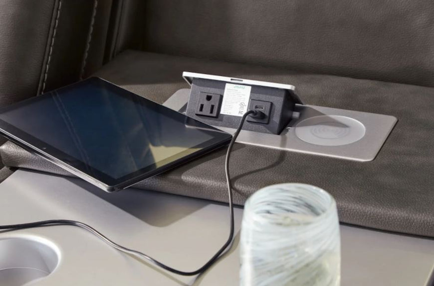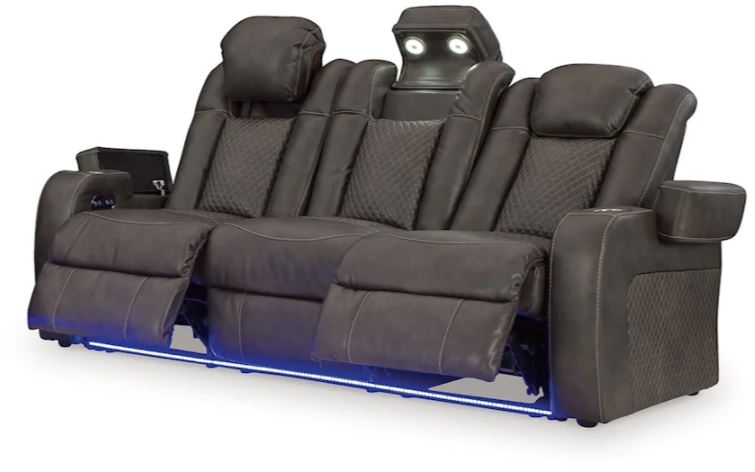This power reclining sofa goes beyond basic comfort. It upgrades the every day, turning your living room into an entertainment hub. Don’t want to leave your seat? Keep essentials within reach with assorted charging options, cup holders and storage arms. You can create an even cooler vibe for family movie nights and friendly gaming matches with LED lights. And your sleek style isn’t compromised—its diamond stitching and streamlined arms recall the aesthetics of luxury automobiles.
