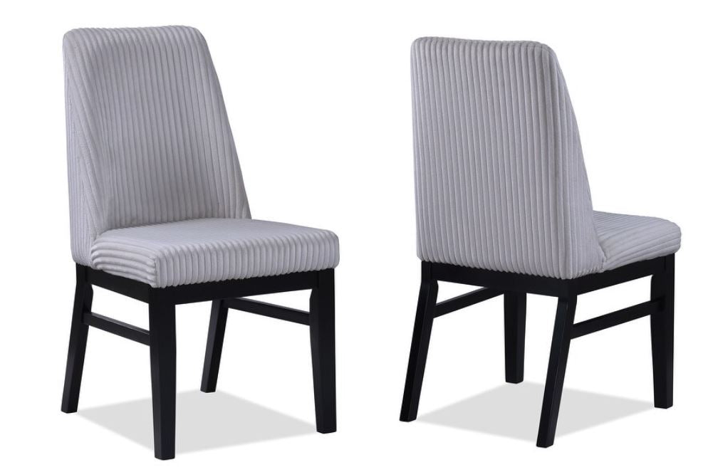 This set of 2 contemporary side chairs features a sleek and modern design that fits seamlessly into any dining or living room space. The textured fabric upholstery and high back provide a touch of elegance and sophistication. Comfortable Seating: The high-back and cushioned seats are upholstered in high-quality, textured fabric, offering both comfort and support for extended periods of seating. The plush padding ensures a cozy dining experience.