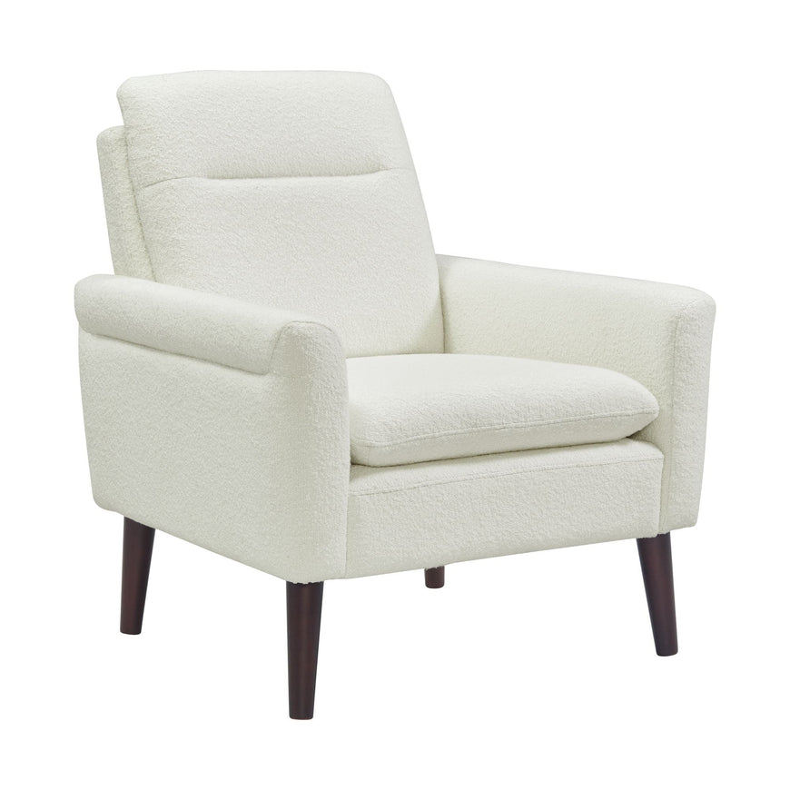 The Hawk Accent Arm Chair is the perfect combination of comfort and style. With a memory foam cushion, highly-textured boucle fabric, and espresso tapered legs, this accent chair not only looks great but feels great too. The high seat back provides ample support, while the overall mid-century style adds a touch of sophistication to any room. Bring home the Hawk Accent Arm Chair and elevate your space with both comfort and style.