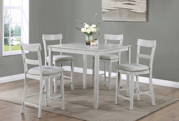 Experience the epitome of understated elegance with our chic, muted-tone dining set. Crafted with a sophisticated driftwood finish, this ensemble exudes a tranquil ambiance, making it a perfect haven for cozy meal times. The plush, soft-textured seat cushions harmonize seamlessly with the subtly distressed wooden design, providing a blend of comfort and style. The Ladder-back chairs bring a touch of traditional charm, while the minimalist table design ensures adaptability to both contemporary and classic interiors
