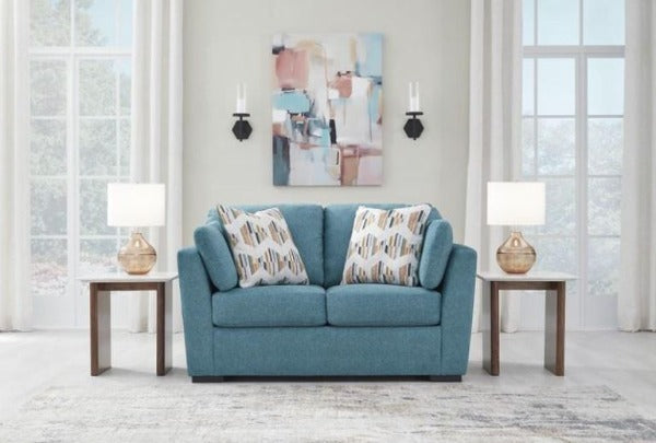 You want your home to reflect your modern, trendy eye for design. This loveseat is here to help. Bold, bright and beautiful, it adds a fashion-forward pop of color to your living room. Velvet-like upholstery and matching bolster pillows keep comfort at top of mind, whether you're lounging around or entertaining guests. How’s that for fresh style and functionality?