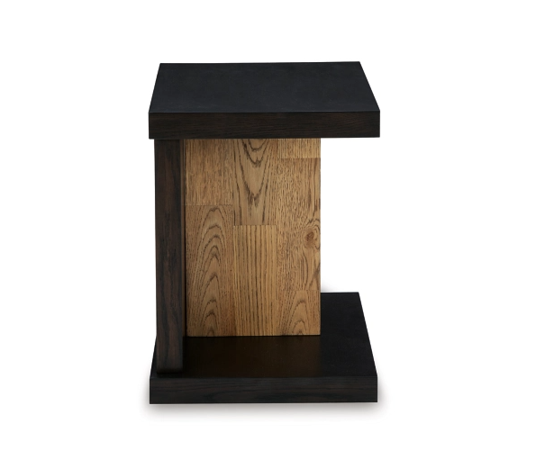 This sculptural chairside end table is a perfect blend of contemporary design and relaxed living. Its clean-lined design, contrasting finish and attention-grabbing details take your decor to the next level. The open plinth base adds a touch of modern elegance, while USB charging keeps your devices powered all evening long.