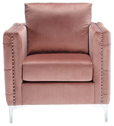 Attention divas…we've reserved you a seat! An indulgent choice for highly contemporary spaces, this painstakingly crafted chair in blush pink lures with its sleek lines, deep tufting, silvertone sheen and velvety soft feel. If nothing but high glam will do, this sensationally styled accent chair is for you. Loose back...