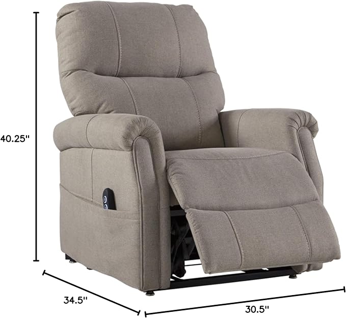 When it comes to exceptional comfort and style, this power lift recliner is right on the mark. This single-motor lift recliner with 40" high back design has you covered from head to toe. Richly neutral, feel-good fabric is sure to blend beautifully in your space. Clean, transitional styling looks equally...
