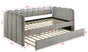 Experience the perfect blend of comfort and sophistication with this elegantly designed piece, crafted to bring both style and functionality to your space. Featuring a plush, scalloped silhouette with integrated LED lighting, this luxurious addition creates a soft and inviting ambiance, while the beautifully upholstered frame enhances its refined aesthetic. Designed with versatility in mind, it offers a spacious sleeping area and an integrated pull-out trundle, making it ideal for maximizing space without compromising on elegance. Whether placed in a bedroom, guest room, or lounge area, this stunning design effortlessly transforms any setting into a chic and cozy retreat.
