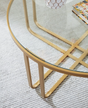 These coffee and end tables set the perfect stage for displaying favorite books, unique trinkets or serving trays. With trendy goldtone frames and clear glass tops, their versatile design effortlessly suits modern interiors. Whether acting as the focal point for a social soiree or a landing spot for your morning...