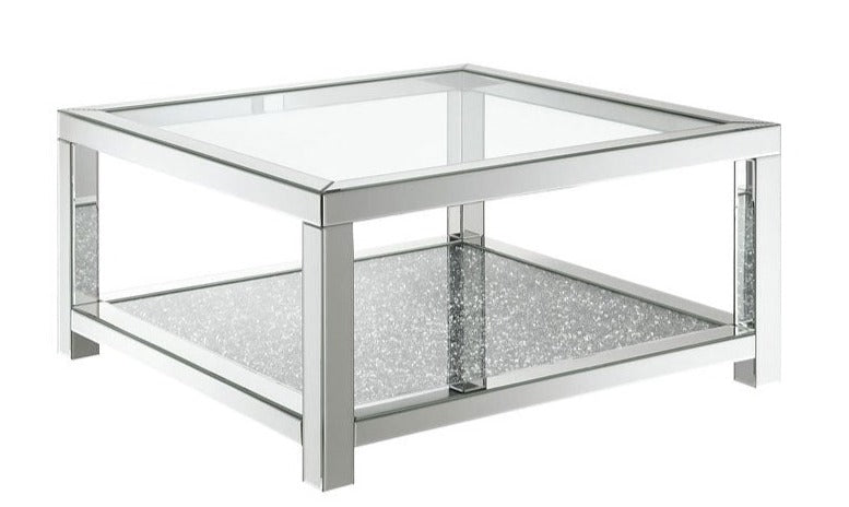 The Miri Coffee Table will be such a staple in whichever room you choose! This statement piece features mirrored glass throughout, instantly adding an elegant feel to your home. Additionally, the bottom shelf is open and is the perfect space to flaunt your favorite décor. The straight legs make this contemporary piece a staple in your home for years to come. With an eye-catching mirrored finish, it will elevate whichever space in glam style. You do not want to miss out on this coffee table!