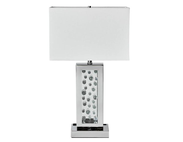 Introducing a table lamp that embodies modern sophistication with its unique glass bubble column and clean rectangular shade. Perfect for adding a touch of contemporary elegance to any space, this lamp is designed to serve as a statement piece while providing a warm, ambient glow.