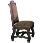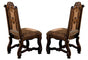 Accentuate your dining room table with the beauty and elegance of this dining side chair. The wood veneer frame is enriched with a luscious brown finish and intricate carved detail, while the traditional styled upholstery enhances the composition. Pair with a matching table to ensure a flawless dining atmosphere.