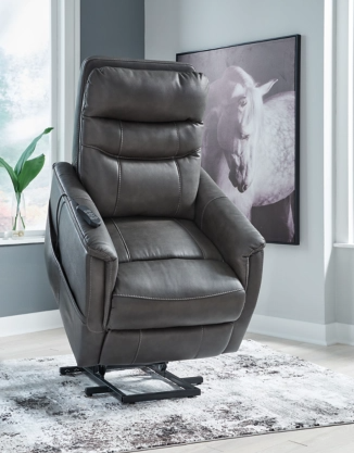 Enjoy comfort to the max in this power lift recliner. It fully reclines for relaxing or snoozing, and then eases you upright and back on your feet with the touch of a button. The dual motor capability lets you recline back and elevate your legs independently for custom comfort. While you’re there, indulge in the oh-so-fabulous heat and massage functions for total bliss. And its heavyweight padded faux leather, in a neutral hue that complements most color schemes, looks as good as it feels.